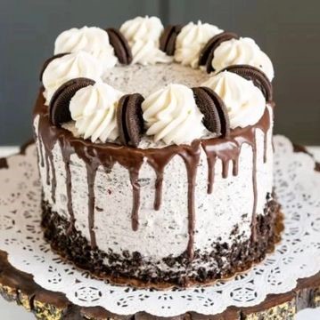 Layers of rich chocolate sponge filled with Oreo buttercream, iced with Oreo buttercream on the outside and topped with whole Oreos. (Serves 8-10 people)